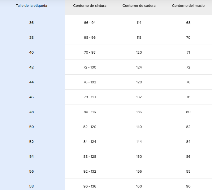 Guía de talles: